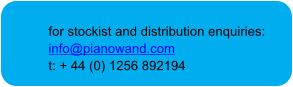 UK PATENT GB2472662 • INTERNATIONAL PATENT.app PCT/GB2010/052217 • Pianowand® Ltd. Company Registration 07451557Community Registered Design 001275283-0001 001275283-0002 001275283-0003 001275242-0001 001275242-0002Pianowand® Ltd protects its Intellectual Property Rights vigorously, therefore anyone or business wishing to use the design of the chordwand®, scalewand® or modalwand or any design of any part of the design of Pianowand® products must seek and acquire written permission from Pianowand® Ltd, after purchasing a licence from Pianowand® Ltd at the company address (email:info@pianowand.com).Pianowand® Ltd has been granted a UK PATENT and European Community Design Registration, and has applied for an INTERNATIONAL PATENT application.